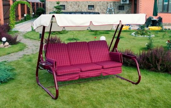 Поэтому наибольшее распространение получили качели, над которыми установлен козырек-навес. Мягкое сиденье и спинка не будут лишними, если речь идет о спокойном отдыхе.