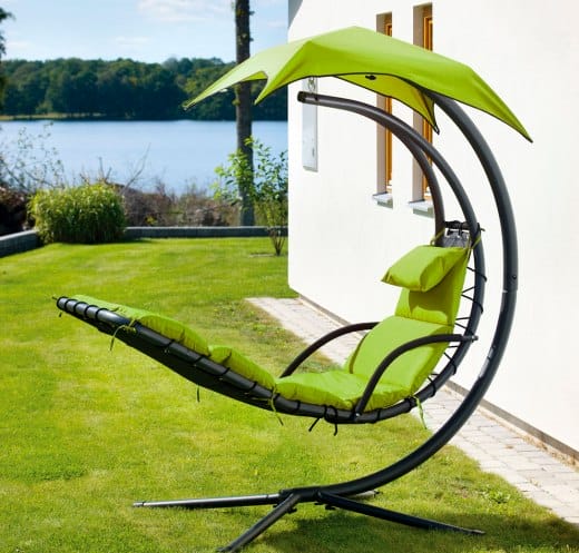 Столь необычная комбинация пляжного шезлонга и качелей понравится многим дачникам и владельцам усадеб.
