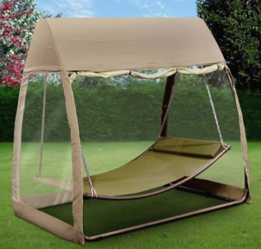 Тот, кто спал летней ночью под открытым небом, не променяет это удовольствие на домашнюю кровать. Установите на дачные качели легкую антимоскитную сетку, и вы будете спать на свежем воздухе сладко и крепко, как ребенок. Сетчатая занавесь смягчит порывы ветра и рассеет прямые солнечные лучи.