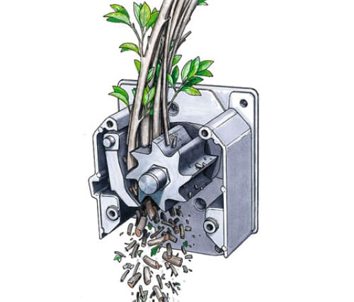 Измельчители со стальными дисковыми ножами лучше использовать для переработки сырых стеблей, коры, бумаги, листьев, травы и тонких свежих веток. С сухими ветками дисковый измельчитель тоже справится, но ножи от такой работы у него затупятся намного быстрее.