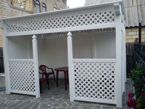 Самые дешевые и доступные беседки – из пластика. За ними легко ухаживать, так как материал устойчив к влажности, не гниет, красить такую беседку не надо, а ремонт не потребует значительных денежных затрат, так как пластик стоит недорого.