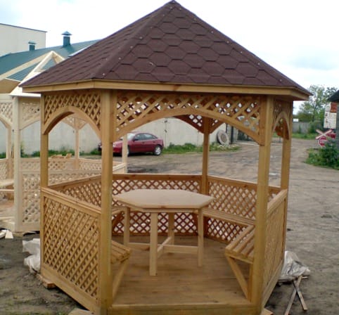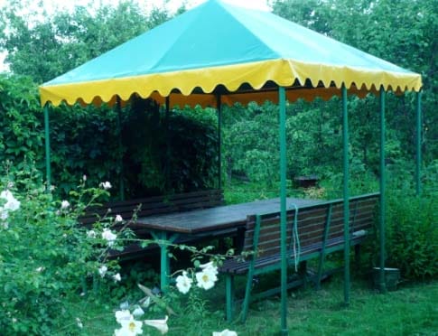 Кроме того она более долговечная, так как возможность убрать ее на зимнее хранение убережет беседку от неблагоприятных факторов среды в этот период года.