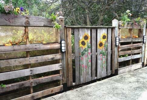 Давайте присмотримся к деревянным паллетам поближе. Можно сказать, что это горизонтальная плоскость с бортиками. А что мы увидим, перевернув ее в вертикальное положение? Напоминает ширму, а если поставить рядом не одну, а, скажем, десять? В итоге у нас получается забор! Немного пофантазировав, можно придать такому ограждению оригинальный и красивый вид.