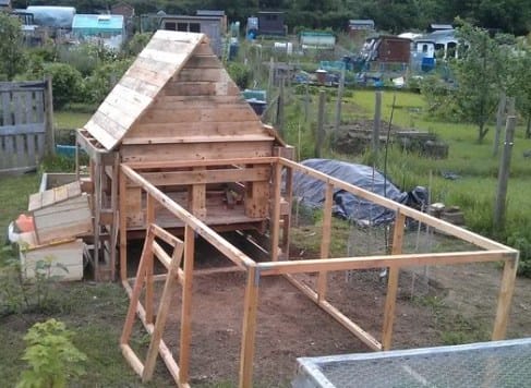 Кроме того, паллеты можно использовать и для создания еще одного варианта постройки – курятника.