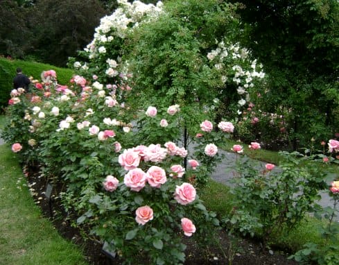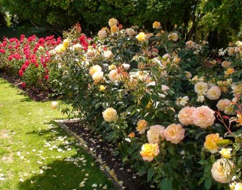 Во всех схемах розариев цветы, как правило, располагают по росту: дальняя линия – плетистые розы, центральная – средневысокие, лицевая – низкорослые.