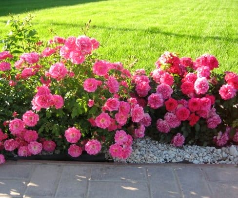 Почвопокровные могут быть, как кустовыми, так и стелющимися. Растут ярким и благоухающим ковром. Вполне выносливы и не боятся сорняков. Основные виды — Snow Carpet, Repandia, Nozomi, Pink Spray, Snow Ballet, Max Graf, Candy Rose и пр.