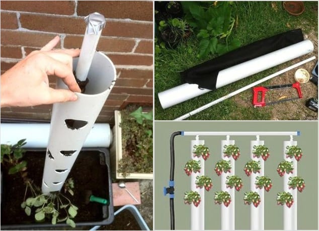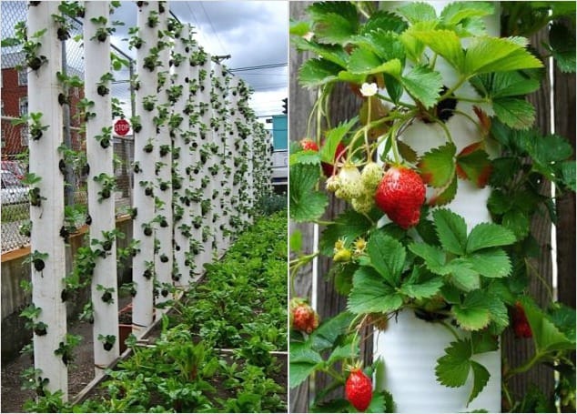 Из этого материала получаются прекрасные вертикальные грядки для клубники. В принципе, выращивать клубнику вертикально очень целесообразно. Так ягода получает больше света для созревания, ее проще собирать и она меньше пачкается землей. Сама же конструкция выглядит сложнее предыдущего варианта.