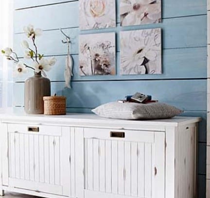 Если стены и потолки вашего дома обиты вагонкой или доской, то для придания помещениям прованского стиля необходимо выкрасить их в белый цвет или нежные пастельные оттенки (оливковый, голубой и др.). Отдельные элементы, например, балки можно окрасить в контрастный коричневый цвет.