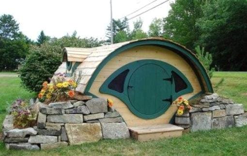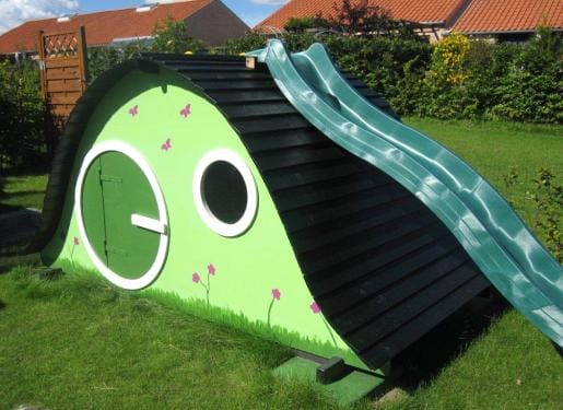 Популярность фэнтэзийных романов Толкина родила новое направление в дизайне детских домиков, превратив их в уютные жилища хоббитов. Вот пример одного из многочисленных сказочных вариантов.