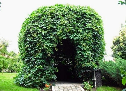 Тот, кто не понаслышке знаком с органической архитектурой, не будет долго колебаться при выборе лучшего варианта детского домика. Простой сеточный каркас, немного труда для его озеленения и вашему дачному шедевру будут завидовать все семейные соседи.