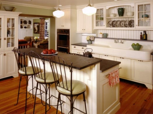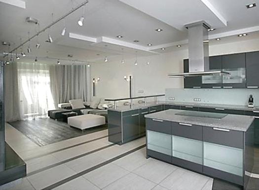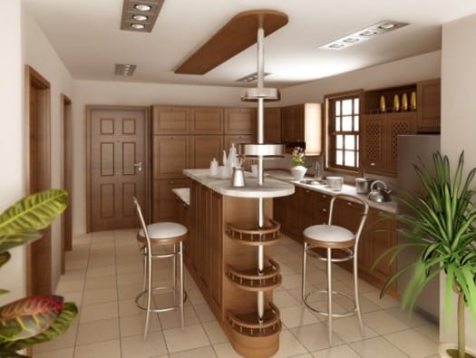 4. Двухуровневый “остров” в центре кухни уместен для больших и просторных кухонь.