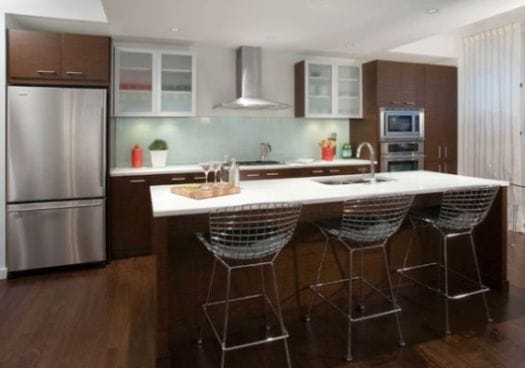 Например, дизайн квартиры выполнен в стиле кантри, стойку барную тогда делают из дерева, если стойка является продолжением столешницы – тогда она будет из камня, а при минималистском стиле – стол из стекла.