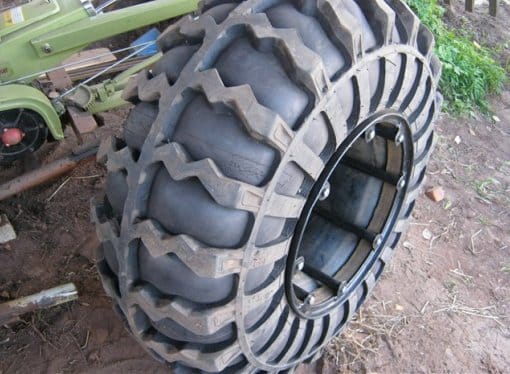 Иногда для изготовления шин сверхнизкого давления используют автопокрышки от грузового транспорта. Их облегчают, аккуратно вырезая часть поверхности электрическим лобзиком, оставляя только часть борта и грунтозацепный протекторный рисунок.