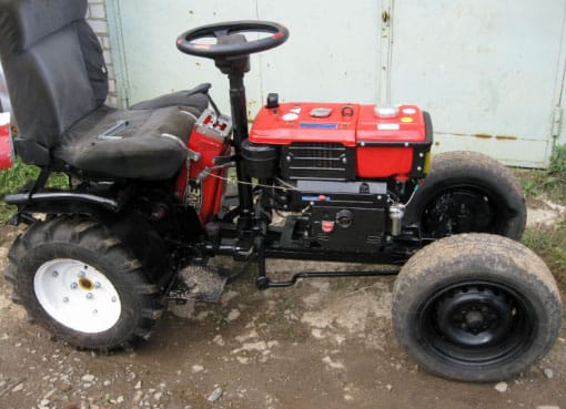 В итоге у вас получится самодельный трактор, на котором можно комфортно обрабатывать участок и возить грузы, прицепив тележку. Важным достоинством готового техкомплекта является его конструкция – точно просчитанная и испытанная в работе. При самостоятельной адаптации мотоблока под самодельную тракторную базу большинство узлов придется изготавливать и состыковывать самостоятельно. Этот процесс часто требует переделки и доводки.