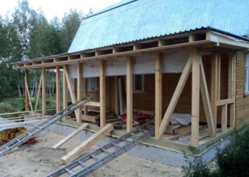 Если профилированный брус для вас слишком дорог, то можно построить веранду, используя принцип каркасной конструкции.
