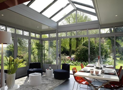Если интерьер дома и его фасад выдержаны в стиле конструктивизм или хайтек, то пристройка должна им соответствовать на все 100%. Обилие стекла, пластика и металлических конструкций в этом случае будет уместно. Очень удачно смотрится в таком интерьере световой фонарь, устроенный в потолке.