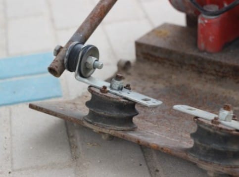 Вторую часть машины – рабочую платформу можно сделать из стального листа толщиной не менее 8 мм и размером 50х80 см. Его передний и задний края нужно отогнуть на 10 см для того, чтобы виброплита не цеплялась за грунт. Для этого по линии сгиба делают пропил болгаркой на глубину 6 мм после чего отгибают край ударами молотка.