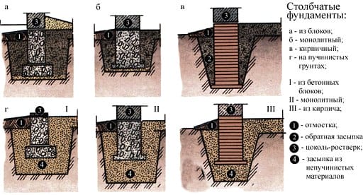 Виды и особенности строительства столбчатых фундаментов