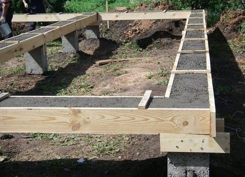 Однако, об экономии в этом случае придется забыть, поскольку общий объем бетона, уложенного в мощные столбы-опоры, практически не будет отличаться от варианта сплошной заливки ленточного фундамента.