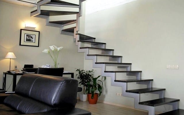 - винтовые (спиралевидная конструкция со ступеньками в форме трапеций): сильно закрученные с крутым подъемом, плавный изгиб, не полная спираль.