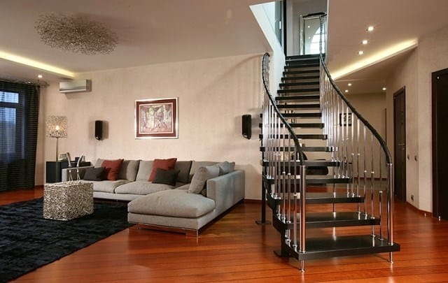 Круговые винтовые лестницы занимают минимум места. При правильных расчетах и продуманном проектировании перемещение по ним будет комфортным и безопасным.