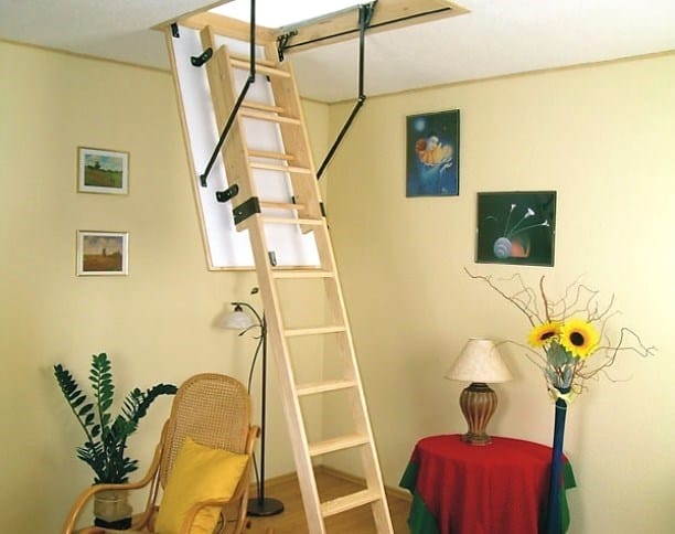 Маленький дом не всегда позволяет установить стационарную лестницу, поэтому производители предлагают выдвижные и раскладные модели для мансарды.