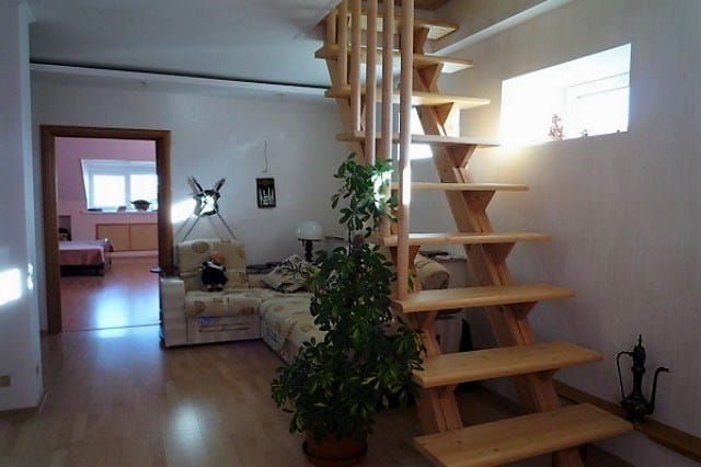 - маршевые (классический вариант с прямоугольными ступеньками): одномаршевые, двухмаршевые (имеют полноценную переходную площадку) и многомаршевые (варианты из дерева для частного дома запрещены нормами пожарной безопасности);