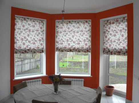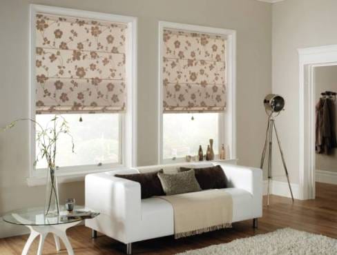 - римская (плоское полотно, поднимающееся с помощью системы колец и шнуров, образуя горизонтальные складки);