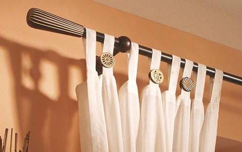 Навесить шторы на такой карниз можно с помощью люверсов (которые описаны выше) или петель, выполненных из той же ткани, что и занавес.
