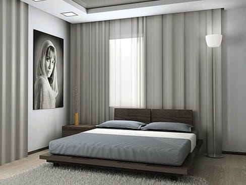 Для интерьера в стиле минимализм подойдут сдержанные варианты оформления оконных проемов – легкий занавес из органзы, почти не заметный на окнах или японские панели. Подходят так же рулонные или римские шторы.