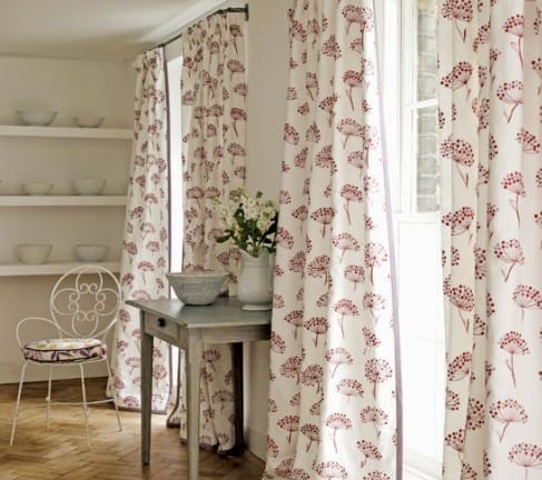 Стиль кантри отличается натуральностью, как в выборе мебели, так и в тканях занавесок – лен, хлопок, бязь с цветочными мотивами или однотонные, в клетку пастельных тонов. Для этого стиля так же характерны кружевные шторы и шторы с вышивкой.