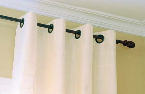 Карниз – штанга круглого или квадратного сечения будет смотреться слишком просто. Но это единственный карниз, который подойдет для занавески на люверсах, так как кольца-люверсы навешиваются непосредственно на штангу.