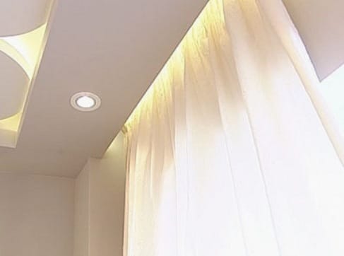 Часто, для того чтобы спрятать потолочный карниз, устраивают специальную нишу, особенно при подвесных потолках из гипсокартона. Такие ниши выполняют и со специальной светодиодной подсветкой. Мягкая подсветка создает интимное освещение.