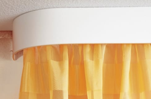Применяя потолочные карнизы, вы сможете визуально «поднять» потолок, ткань занавеса будет струиться прямо с потолка.