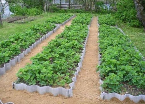 Бортики для грядки можно делать не только из дерева. Стоит учитывать, что такой вариант не долговечен, ведь от влаги доски быстро сгниют и через год-два их надо будет заменить. Бюджетным и более долговечным вариантом станет конструкция из шифера.