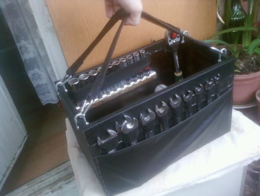 Одев на такой ящик чехол из прочной искусственной кожи с пришитыми к ней отделениями-кармашками, можно значительно увеличить количество хранимого инструмента.
