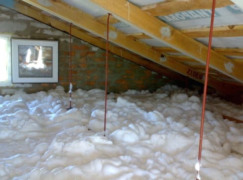 Пеноизол и пенополиуретан, в отличие от обычного пенопласта, чаще всего применяются в жидком виде. Это позволяет утеплять сложные по конфигурации конструкции и внутренние полости в стенах и перегородках.